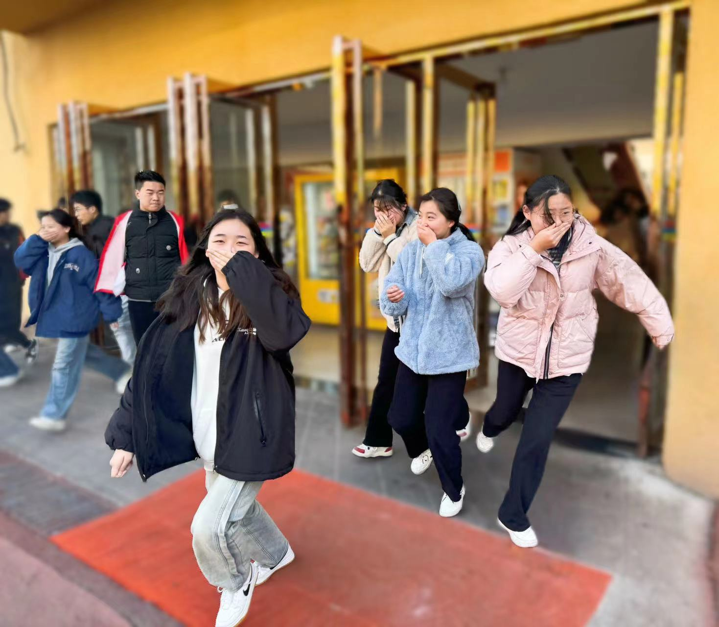 15点30分消防演练正式开始。随着消防警报声的响起,“滚滚浓烟”也在悄然弥漫。情况紧急,老师们第一时间组织学生沿着安全通道路线,快速有序地撤离教学楼。途中,学生们冷静、有序、快速撤离至操场安全地带集合,出色完成了本次消防演练任务。