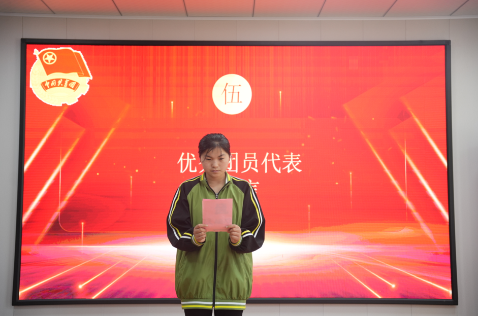 紧接着,优秀团员代表上台发言,表达了他们加入共青团的激动心情和努力奋斗的决心。她表示,作为一名共青团员不仅感到光荣,更应该深刻认识自己应尽的义务,以更高的标准要求自己,展现共青团员的风采。