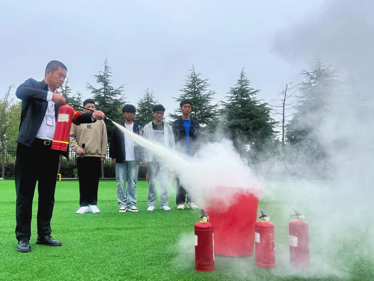 随后,校保卫处谢振老师现场讲解了灭火器的使用步骤,并给同学们演示了如何正确使用灭火器。在谢老师的指导下,大家很快就熟练掌握了灭火器的使用要领:一提、二拨、三握、四压。