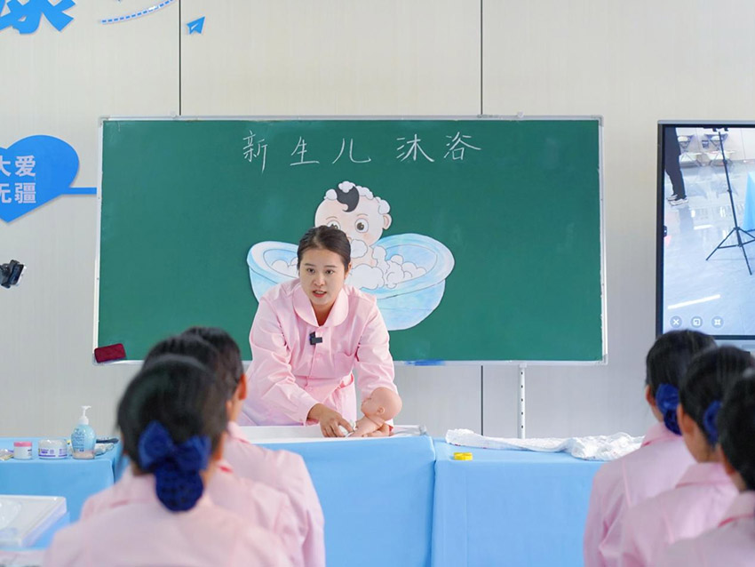 吴娜娜老师是母婴照护专业的骨干教师,深谙中职教育“工学结合、知行合一”的核心理念。为帮助学生扎实掌握专业技能,她摒弃传统“纸上谈兵”的教学模式,将临床实操案例与课堂教学深度融合,打造出实用且生动有趣的课堂。在合肥市校际公开课《新生儿沐浴》上,她借助仿真婴儿模型细致拆解操作流程,将抽象理论转化为可落地的实操步骤,展现出精湛的教学设计与生动的讲解。
