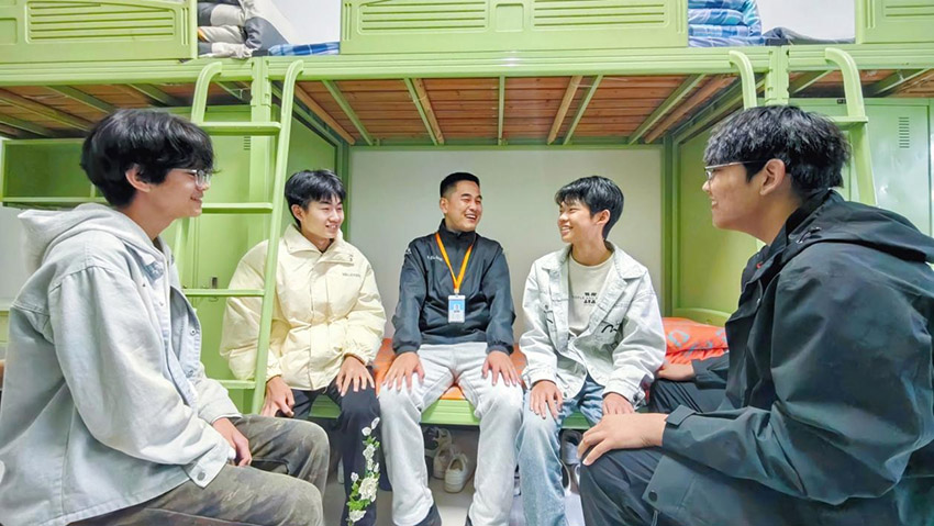 朱老师始终将学生视如己出,把自己当作班级大家庭的“大家长”。一方面,他像家长般为远离父母的青春期孩子化解学习难题与心理困惑,给予他们满满的安全感,悉心培养学生从容的气质、沉稳的心态与出色的抗压能力。另一方面,他以身作则,树立起“大家长”的威严形象:不仅执行力强、办事稳妥可靠,更有着强烈的责任心。朱老师严爱并施、张弛有度的育人作风,让学生既因那三分关爱而心生亲近,又因七分敬畏而自觉自律。这份恰到好处的“恩威并济”,使学生对他愈发敬重,更愿意听从教导,甚至会无条件地执行他的要求。