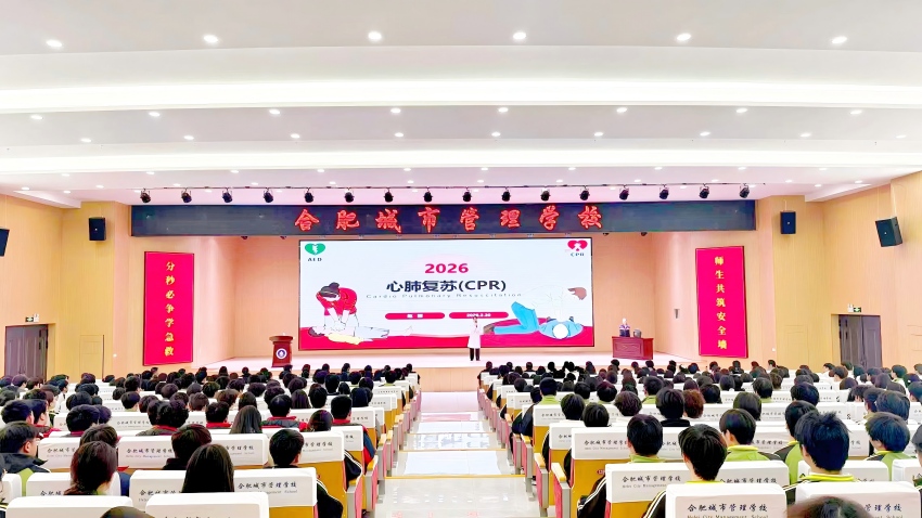 为深入贯彻合肥市《健全完善“985”工作体系 促进中小学生健康成长的实施方案》,深化学校保护,切实提升师生自救互救能力,筑牢校园安全防线,3月31日下午,合肥城市管理学校精心组织开展了一场以心肺复苏为主题的急救知识专题培训活动。约650名师生齐聚学校报告厅,共同参与了此次培训。