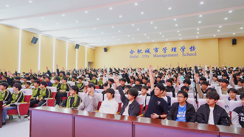 作为系列活动的重要一环,合肥城市管理学校特别邀请龚小虎警官走进校园,开展专题普法讲座。讲座紧扣国家安全、校园安全等重点内容,结合青少年生活实际与典型案例,用通俗易懂的语言讲解法律知识与安全常识,引导学生树立法治观念,增强自我保护意识与国家安全责任感,切实提升了学生法治素养。